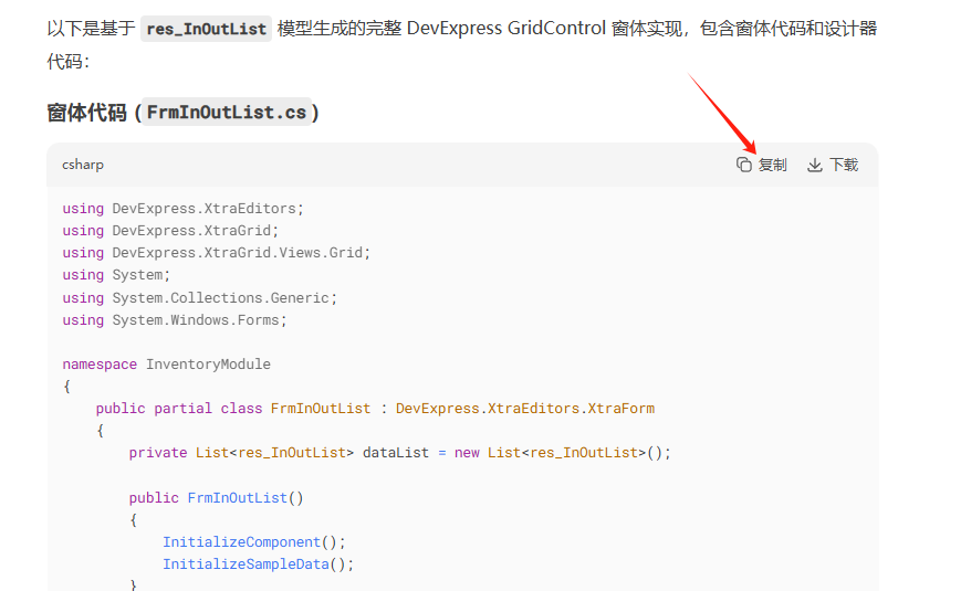 使用DeepSeek生成DevExpress表格、窗体、C#模型代码并集成到开发框架