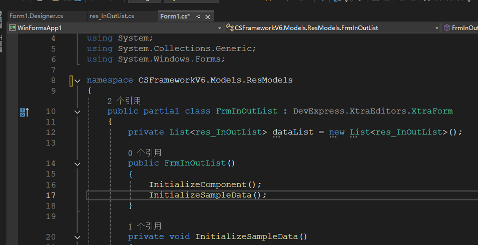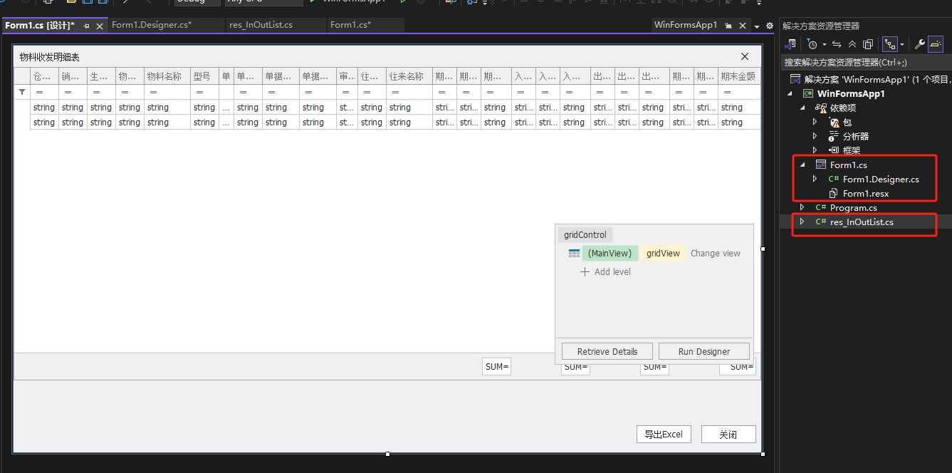 3、复制窗体设计器的代码(FrmInOutList.Designer.cs)