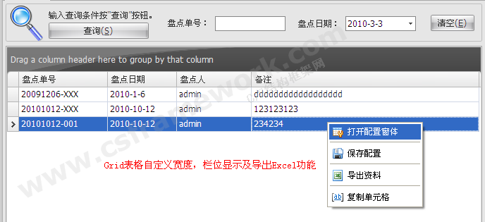 表格栏位自定义功能窗体(frmGridCustomize.cs)