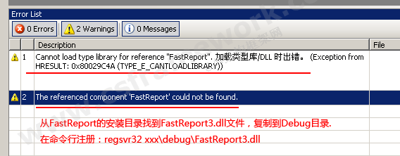 Cannot load type library for reference "FastReport".加载类型库/DLL时出错。