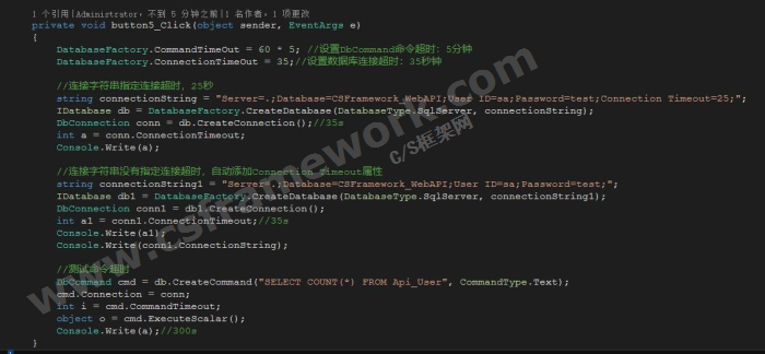 CSFramework.DB关于设置全局变量CommandTimeOut/ConnectionTimeOut的测试案例