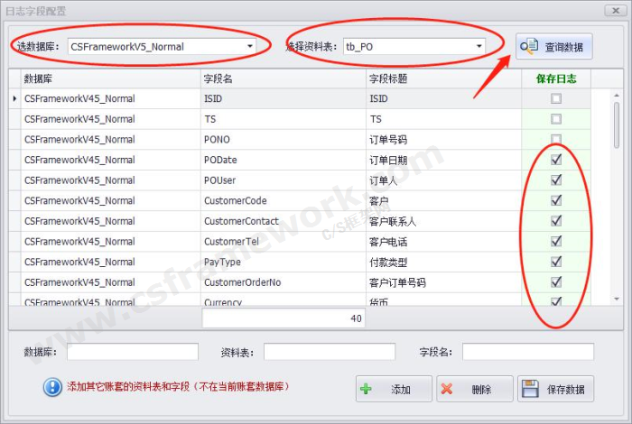 数据日志配置表(CSFrameworkV5_Normal数据库)