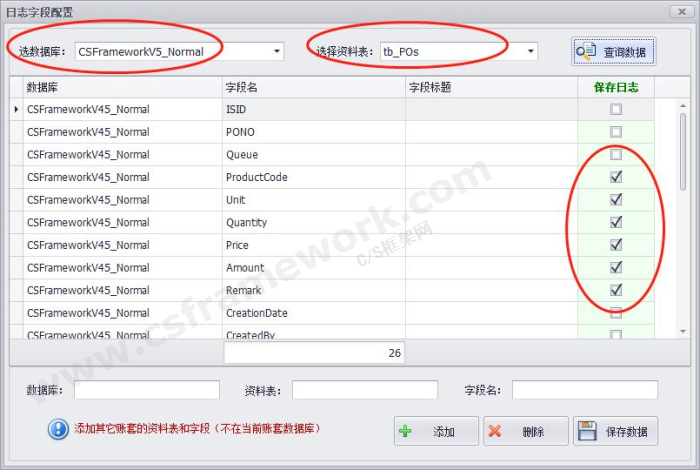 配置《采购订单》明细表:CSFrameworkV5_Normal.dbo.tb_POs表。