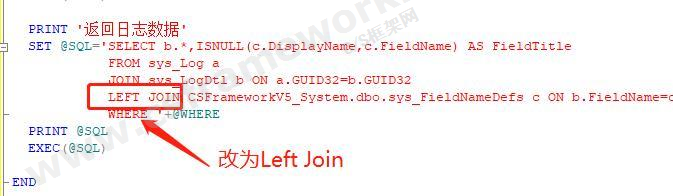2, 修改sp_sys_SearchLog存储过程,改LEFT JOIN