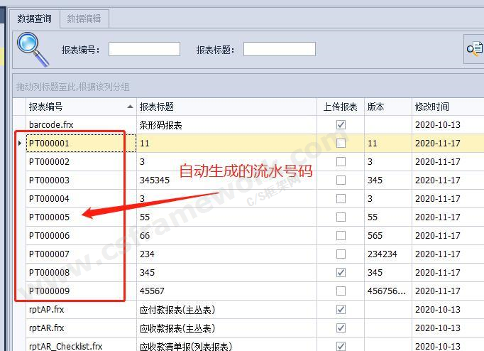 数据字典基础资料窗体主键设置为自动生成流水号码解决方案如下图所示:点【新增】按钮,报表编号为“*自动生成*”,输入其他资料,点保存自动生成报表编号。