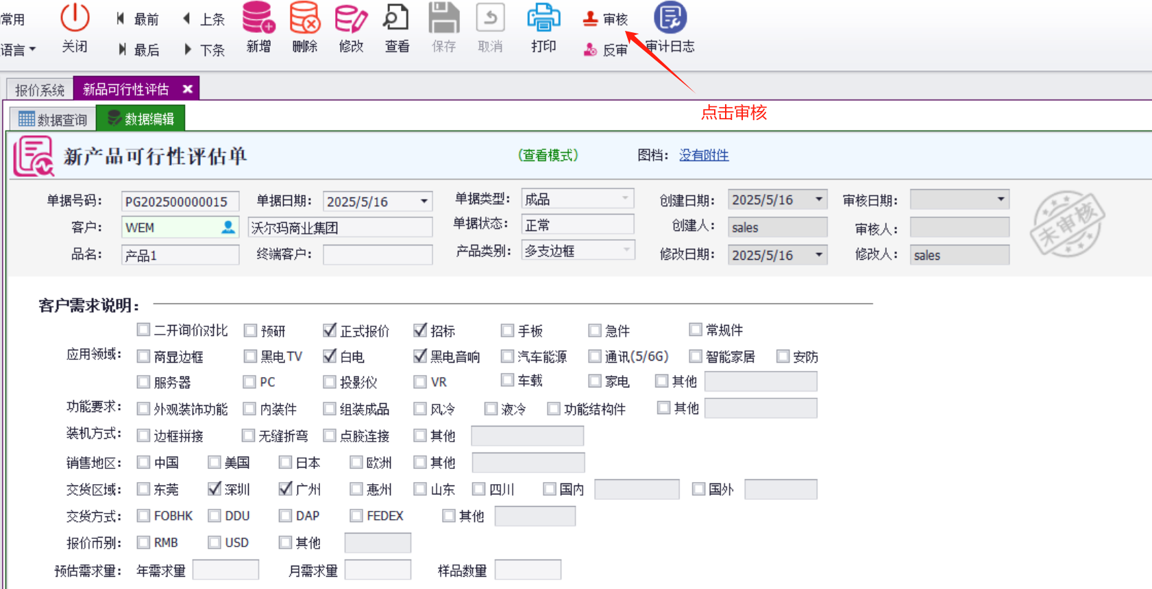 QMS五金制品行业报价系统 - 用户操作手册 - 新品可行性评估标签: QMS QMS五金制品行业报价系统 - 用户操作手册 - 新品可行性评估目录功能入口新增评估单查询评估单功能入口报价系统 -> 新品可行性评估新增评估单编辑信息保存审核查询评估单查询成功版权声明:本文为开发框架文库发布内容,转载请附上原文出处连接原文链接:https://www.cscode.net/archive/qms/676734865149957.htmlQMS C/S框架网 2025-05-16 16:21 2025-05-16 16:21