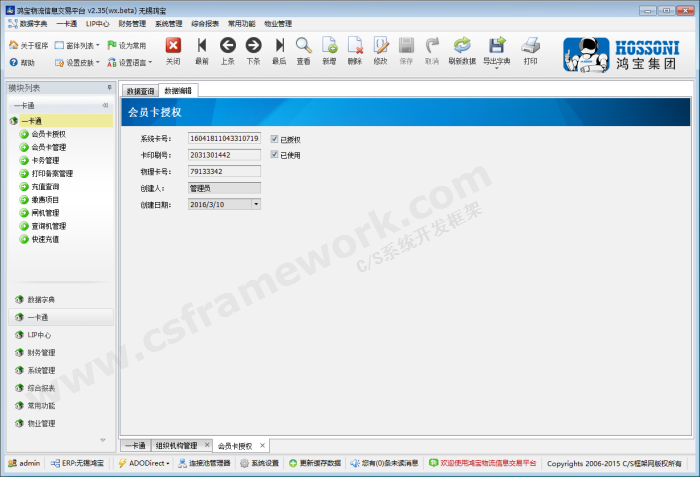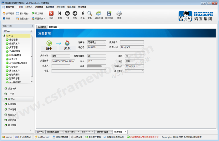 C/S结构快速开发框架 软件快速开发平台 成功案例 MIS系统 大型物流园区物流信息交易平台MIS系统 原创软件@csframework.com