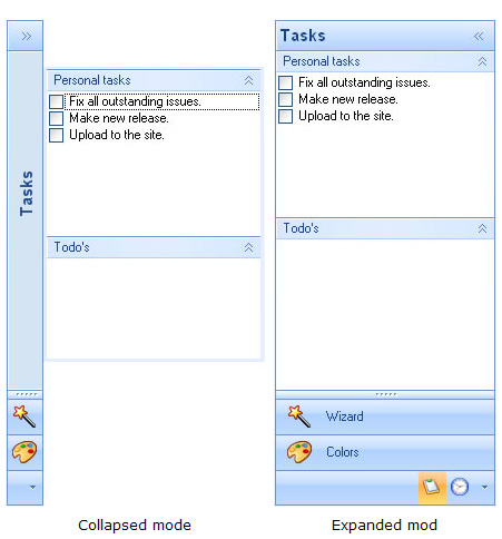 It’s possible for the end user to customize the layout. Like the ordering of the buttons or the visibility of the buttons. It’s possible to save the layout settings in an external data file. The details which are saved are the ordering of the buttons, the visibility of the buttons, the amount of visible buttons, the position of the splitter and whether the Pane is collapsed or not.