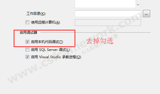 vs 启用非托管调试时不允许更改标签: vs 启用非托管调试时不允许更改解决方案:项目->右键属性->调试->启用本机代码调试,去掉勾选!版权声明:本文为开发框架文库发布内容,转载请附上原文出处连接原文链接:https://www.cscode.net/archive/newdoc/cs-210903193550282-26.htmlNewDoc C/S框架网 2017-09-23 09:41 2017-09-23 09:41