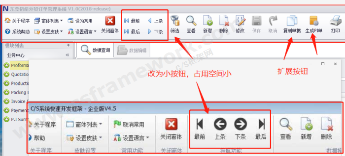 CSFramework企业版与旗舰版的工具栏(Toolbar)区别