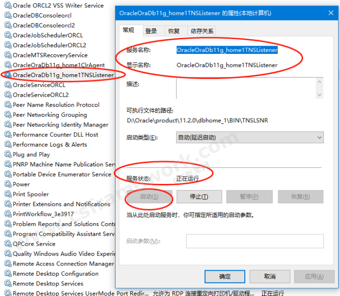 打开Windows服务,启动OracleOraDb11g_home1TNSListener服务。