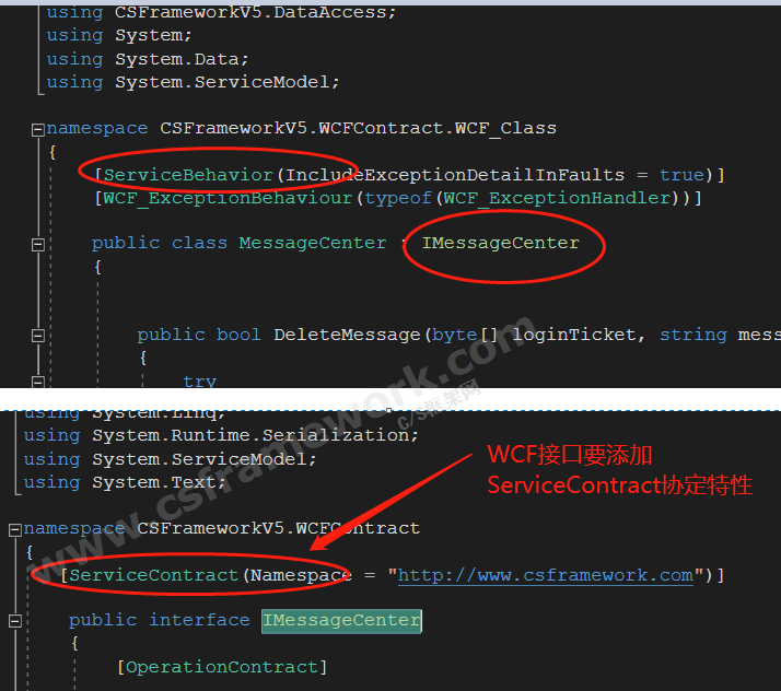 1. WCF服务接口要添加ServiceContract服务协定特性